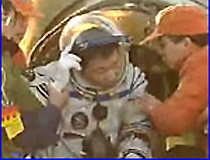 Yang Liwei Walks out of Re-entry Capsule with the help of Recovery Team.