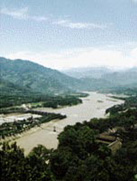 Dujiangyan was built in BC 256 in southwest China's Sichuan Province along the upper reaches of the Minjiang River, a major branch of the Yangtze River. The scheme irrigates about 672,700 hectares of farmland and provides water for industrial and household use in 50 large and medium-sized cities.