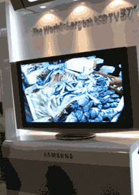 In the exhibition hall, you can also see the biggest TV in the world -- an 80-inch plasma TV. Though most Chinese families can't have such a huge TV, they have seen their future life style: