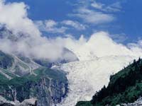 Glaciers cover 31 square kilometers of the Conch Gully. Classified as Modern Glacier, they came into being 16 million years ago. The Grand Glacier Cascade -- 1,000 meters in height and 1,000 meters in width -- is the only one in the world. Its 6 km glacier tongue penetrates into the virgin forest, forming a rare natural landscape with the blend of glacier and forest.
