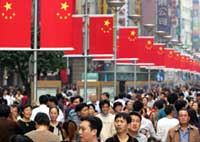 Chinese travellers flock along Nanjing Road Pedestrian Mall, one of Shanghai's popular tourist destinations October 6, 2004. Millions of holidaymakers are flocking to China's big cities during their 7-day National Day holiday.