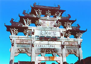 Another famous scenic spot in the village is the paifang (meaning arch) of Hu Wenguang, an upright and honest official of the Ming Dynasty (1368-1644). The paifang was built in 1578, to commemorate this perfect official.