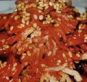I was eager to tuck in to the mouth-watering selection of cold dishes and began with a bowl of brown wheat noodles, drizzled in a spicy chili and garlic sauce with additional vinegar.if heaven was a place on earth it was within that bowl of noodles. With my taste buds initiated I couldn't wait to get my chopsticks around the nest dish.