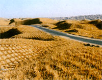 The desert highway winds from Lunnan Oilfield, at the northern edge of the desert, to Minfeng County at the southern edge, dividing into two parts the 340,000-sq-km Taklimakan, the second largest moving desert in the world.