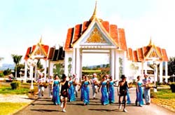 Buddhism is the predominant religion here. Temples and pagodas with a Southeast Asian flavour are dotted about the countryside and towns, and monks, especially young male trainee boys, are a common sight, clothed in traditional orange costume, often riding motorbikes to the temple.