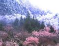 秋風が吹くころになると、谷間の両側(cè)の密林に並ぶカエデやモミジ、シラカバ、フジマツなどの葉が霜に濡れるたびに美しく鮮やかな紅色、黃金色に変わっていく。山々は紅葉に彩られ、流水も紅葉に染まり、道も紅葉に覆われ、ミヤロの秋は一気に火炎に包まれる。雪を頂いた山々、溫泉、森林、紅葉、そしてチベット?チャン族の文化が織りなす新奇で、夢幻な回廊がどこまでも広がる。