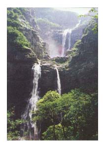 ろ山の山には、斷崖絶壁と峽谷が多く、滝も多く見られる。例えば、有名な三迭泉という滝は、落差が300メートル、水が三段に分かれて、下は斷崖絶壁となっている。詩人李白は、「飛流直下三千尺、銀河九天より落ちるか」とろ山の滝の雄大な様を歌っている。