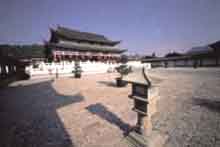 歴史の証人である牌坊は、永遠に失われ戻らない。私は悔しく思いながら、さらに建物の見學を続けた。建物は、正殿、光碧殿、玉音殿、三清殿、御園と、一列に奧に連なっており、全體の構造は故宮を思わせる。ナーシー族の文化と中原の文化は、源をたどれば、重なりあう部分が多いのだろう。