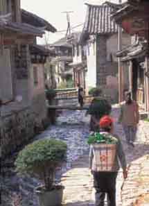 麗江の都が造営されたのは、宋代末から元代初期(13世紀末)にかけてといわれる。當時、漢語では「大研鎮」と呼ばれ、ナーシー族の言葉では、「グゥベン」とか「イクディ」などと呼ばれていた。「イクディ」とは街を流れる金沙江の後背地、というような意味、「グゥベン」は米倉、つまり米の集散地という意味だという。明代初期(14世紀中ごろ)には、麗江は相當な規模の都となり、雲南、四川、チベット一帯の交通の要所だった。清代以降、17世紀中ごろには、麗江は雲南西北部の物資の集散地として、重要な役割を果たすようになっていた。また歴史の一時期、インドからチベット、雲南一帯に向かう隊商たちの通路となっていたこともある。険しい山岳地帯を移動するこうした隊商は馬を連ねたもので、主に茶の取引きをしていた。彼らの移動したルートは「茶馬古道」とも呼ばれるが、麗江は、彼らにとっても重要な街だったのだ。