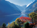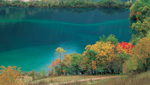 九寨溝に生いしげる林と湖は、植生分布が立體的、典型的で多様だ。彩林植物、水生植物、地衣類などで、ここに共生する高等植物は2576種、下等植物は四百種あまり。そうした植物が、九寨溝の四季における多様な色彩をつくりだしている。春は、赤、黃、紫、白などさまざまな色のツツジが林のなかに彩りをそえ、ヤマナシやヤマモモの花が競うように咲きほこる。夏は、各種の植物が多彩な緑を「演出」し、その世界が旺盛な生命力を表している。秋は、九寨溝の色彩がもっとも秀麗な季節(jié)である。深いオレンジ色のハゼ、真紅のカエデと野生の果実、鮮やかな紫色のアンズの葉、さらにキササゲ、ウルシ、モミジ、エンジュ……。冬は、美しい雪景色と透明な氷のカーテンが、九寨溝を聖なる女神に飾りたてる。一面の銀世界はなんとも典雅であり、一つひとつの湖は、まるで女神が飾った高貴な青い寶石のようだ。