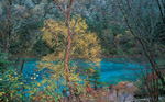 湖のなかで、色彩の美しさでいえば「五彩池」だろう。それは精巧な青い寶石を密林のなかにはめ込んだよう、湖水は透き通るように澄んでいる。湖のほとりに立つと、湖底6?6メートル深さの小石の形やスジまでハッキリと見えた。