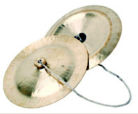 民間の打楽器。演奏の際、鐃碗の穴につけた皮のひもや絹織物を腕にまき締め、指を分けて鐃碗を握り、二つの鐃片をたたき合わせて音を出す。