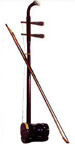 広東音楽の中の粵胡で、広東では二胡とも稱される。20年代に、二胡を改造したもの。その琴筒は二胡より小さく、音が二胡より4、5度高いことから、高胡という。外弦は鋼絲弦で、內弦は鋼線で弦を巻き付ける(絲弦を使うものもある)。演奏の際、両方のふとももで琴筒をはさんで音量をコントロールする。音色は軽快かつ高らかである。高胡は幅広く使われ、現在は民族楽団の高音弦楽器として、合奏、伴奏、獨奏に用いられている。
