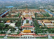 北京市の中心部にある紫禁城は、明?清という中國最後の二つの封建王朝の皇居である。1420年に竣工した頃から、1911年に最後の皇帝が権力の座を下りるまで、500年の間に24人の皇帝がここで暮し政務をつかさどった。故宮の建築構造や規模、色彩、裝飾、裝飾品などはみんな封建王朝の儀禮や序列を表わし、皇帝のこの上ない権力と厳しい身分制度を示すものである。故宮の建築物は主に木構造で、その宮殿は火災の被害を受け、何度も修築されたが、本來の構造は大體殘されている。現在では9000間の部屋があり、世界に現存する最も大きな、最も完ぺきな形で保存された古代の宮殿群となっている。巨大な城は「外朝」と「內庭」に分かれている。外朝は南側にあり、中軸線に位置する太