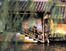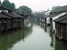 水郷風(fēng)習(xí)區(qū)は以上の各區(qū)域と川を隔てて向かい合った形になっており、川沿いの1000メートルもの古い河岸と川のほとりの樓閣、回廊は長(zhǎng)江以南地域の水郷の趣きがある。前世紀(jì)の初め頃に石材を敷き詰めて作った道をそぞろ歩くかまたは小舟に乗って遊覧すれば、家屋の影が川の水の中に映り、流れとともに揺れ、実にうっとりさせられる。