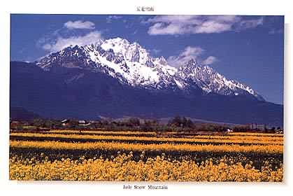 「玉竜雪山は天下一」という詩(shī)句はオーバーな表現(xiàn)ではなく、この山は確かに造物主が作った山と川の傑作であると言える。そこには北緯最南端の近代の海洋性氷河があり、一年じゅう氷と雪が融けることのない主峰は南から北へと30余キロもえんえんと伸び、空に舞い上がった竜のように見(jiàn)える。伝えられるところによると、玉竜雪山の標(biāo)高4600メートルの地帯は年じゅう融けることのない積雪があり、それは硬く、きらきらと光り、大昔から人類はそれに觸れたことはなく、「大昔からの雪」と言われている。