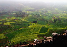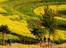 同地域は全國有數のアブラナ生産地。アブラナが開花シーズンを迎えるこの時期、20萬畝(約1萬3400ヘクタール)にわたって広がるアブラナ畑は、ミツバチやチョウが飛びかう國內最大の花畑になる。