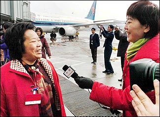 3月1日、全國政協會議に出席する委員たちが続々と北京に到著した。寫真は湖南省の石玉珍委員。