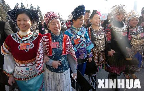 第10期全國人民代表大會(全人代)第3回會議が5日午前9時、北京?人民大會堂で開幕した。寫真は同大會に出席する代表たち。