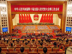 九日半に亙って開(kāi)かれた中國(guó)の國(guó)家最高権力機(jī)関である第十期全國(guó)人民代表大會(huì)第三回の年次総會(huì)が今日北京で閉幕した。閉幕に先立って、「反國(guó)家分裂法」が可決されたほか、全人代代表たちの審議修正を経た《政府活動(dòng)報(bào)告》も承認(rèn)された。