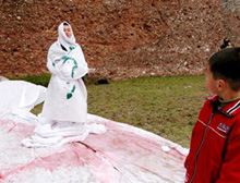 江蘇省南京市を流れる秦淮河の保護(hù)をテーマにしたパフォーマンス活動(dòng)が27日、同市石頭城公園で行われた。白い布に身を包み、赤い汚水をかけた白い布の中央に立って、淡水資源を保護(hù)し、秦淮河を再び澄みきった川に戻そうと人々に呼びかけるアーティストの姿も見(jiàn)られた。