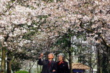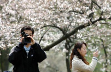 青空が戻った浙江省杭州市では30日、市內(nèi)の名所?西湖風(fēng)景區(qū)でサクラが次々に開花し、人々の目を楽しませている?,F(xiàn)地には人々が続々と訪れ、美しい春の景色を満?jiǎn)摔筏俊?