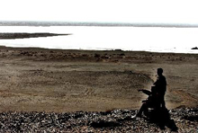 寫真(左):昨年9月から湖水面積が回復しつつある額済納(エチナ)地區(qū)のオアシス?居延海