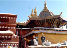 この殿閣は300年以上の歴史を持つ。布達拉宮の紅宮(ポタン?マルポ)1階中央の西大殿の西側に位置し、建築面積は約450平方メートルあまり。外観は4階に分かれているが、內部は高さ11.27メートルの吹き抜けになっているため、修繕には高い技術が要求される。関連部門は修繕工事に當たり、実地調査と考証を繰り返して厳密かつ科學的な修繕プランを決定した。工事は7月中にすべて完了する見通し。