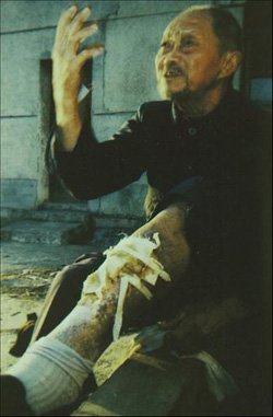 寫(xiě)真上:「魯西細(xì)菌戦大掲密」に収録されている浦江県の炭疽菌被害者、柳木水さんの寫(xiě)真