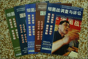 寫(xiě)真下:崔維志さんが主編を務(wù)める雑誌「細(xì)菌戦の訴訟と調(diào)査」。現(xiàn)在第6冊(cè)が出版されている。大量の調(diào)査資料で中國(guó)を侵略した日本軍が山東省西部で行った細(xì)菌戦の史実を暴いた。