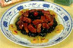 4、ハスの実を碗の中に入れ、周りにナツメの砂糖漬けを並べ、ヒツジの肉を上に置いて、白砂糖をかけ、せいろうで3時間ほど蒸してから、お皿の中に入れて、煮詰めたハチミツをその上にかけて出來上がりとなる。