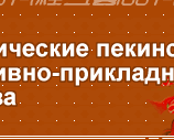 | Изделия декоративно-прикладного искусства традиционно делились в Пекине на три категории – предметы быта, декоративные изделия, коллекционные изделия. Со временем происходило обогащение жанров декоративно-прикладного искусства, в результате чего пекинское народное искусство стало настоящей жемчужиной в сокровищнице культурного и художественного наследия Китая. Изделия ?пекинских жанров? декоративно-прикладного искусства имеют три характерные особенности: во-первых, они несут на себе отпечаток ?дворцового? стиля, во-вторых, они несут следы воздействия зарубежной культуры и культуры национальных меньшинств, в-третьих, они имеют ярко выраженную ?народную? специфику. |