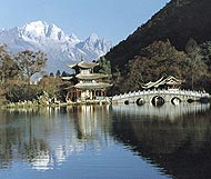 Находящаяся к северу от Лицзяна снежная вершина Юйлуншань величественна и удивительна, а сама гора крайне многообразна. В народе говорят про нее: ?Гора имеет сразу четыре времени года, здесь каждые 10 ли пути имеют свой климат?. Эта гора издавна славится как место обитания уникальных животных и растений, известна она и как большое природное водохранилище. Такая вода снегов и ледников увлажняет эту землю и кормит ее жителей, в этом древнем городе в каждом семейном дворе течет ручей, а над ним свешиваются ветви ив?.