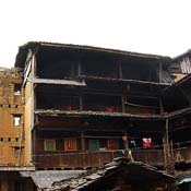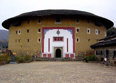 Las torres de tierra distribuyen principalment en el oeste de la provincia de Fujian. En el pasado, debido al atraso económico y a la comunicación difícil había muchos bandidos y peleas armadas en esta zona. Así que después de bajar de la cuenca del río Amarillo en el norte del país, los hakkas, una rama de los hans (etnia mayoritaria de China), construyeron torres de tierra a modo de castillo, que son una especie de viviendas peculiares para defenderse de los bandidos. Estas torres son económicas, sólidas y adecuadas para la defensa propia y tienen un alto valor de arte.