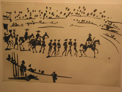 La exposición se divide en 8 secciones que van desde las pinturas de vestidos teatrales del “tricornio” a las ilustraciones realizadas por el pintor a partir de los poemas del escritor del Siglo de Oro espa?ol Luís de Góngora, pasando por las aguatintas realizadas en 1957 para ilustrar el libro “l(fā)a Tauromaquia. El Arte de Torear” de José Delgado (tratado sobre el toreo y el mundo de los toros), las ilustraciones realizadas en 1949 para ilustrar una edición de “Carmen”, las ilustraciones para una edición del clásico de 1499 atribuido a Fernando de Rojas “La Celestina”, los grabados realizados en 1968 para ilustrar la comedia en tres actos “El Cocu Magnífico” del escritor Fernand Crommelynck, o las aguafuertes realizadas en 1942 para ilustrar la obra “Historia Natural” de Geoges Louis Lequerc o las ilustraciones realizadas para Pierre de Reverdy.