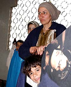 Sajid, la mujer en el centro de la foto, y sus hijos posan para una foto en la embajada de China en Bagdad (Irak). La familia de Sajid, formada por diez miembros, se mudó a la embajada de China tras la ocupación de Bagdad por las tropas de EE UU en abril de 2003.