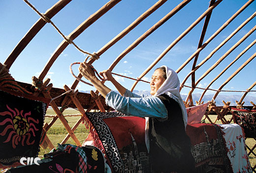 Pastores en Barkol, Hami, mudándose a casas nuevas