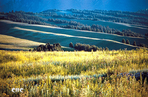 Pradera en el área forestal de la monta?a Nanshan, en Urumqi
